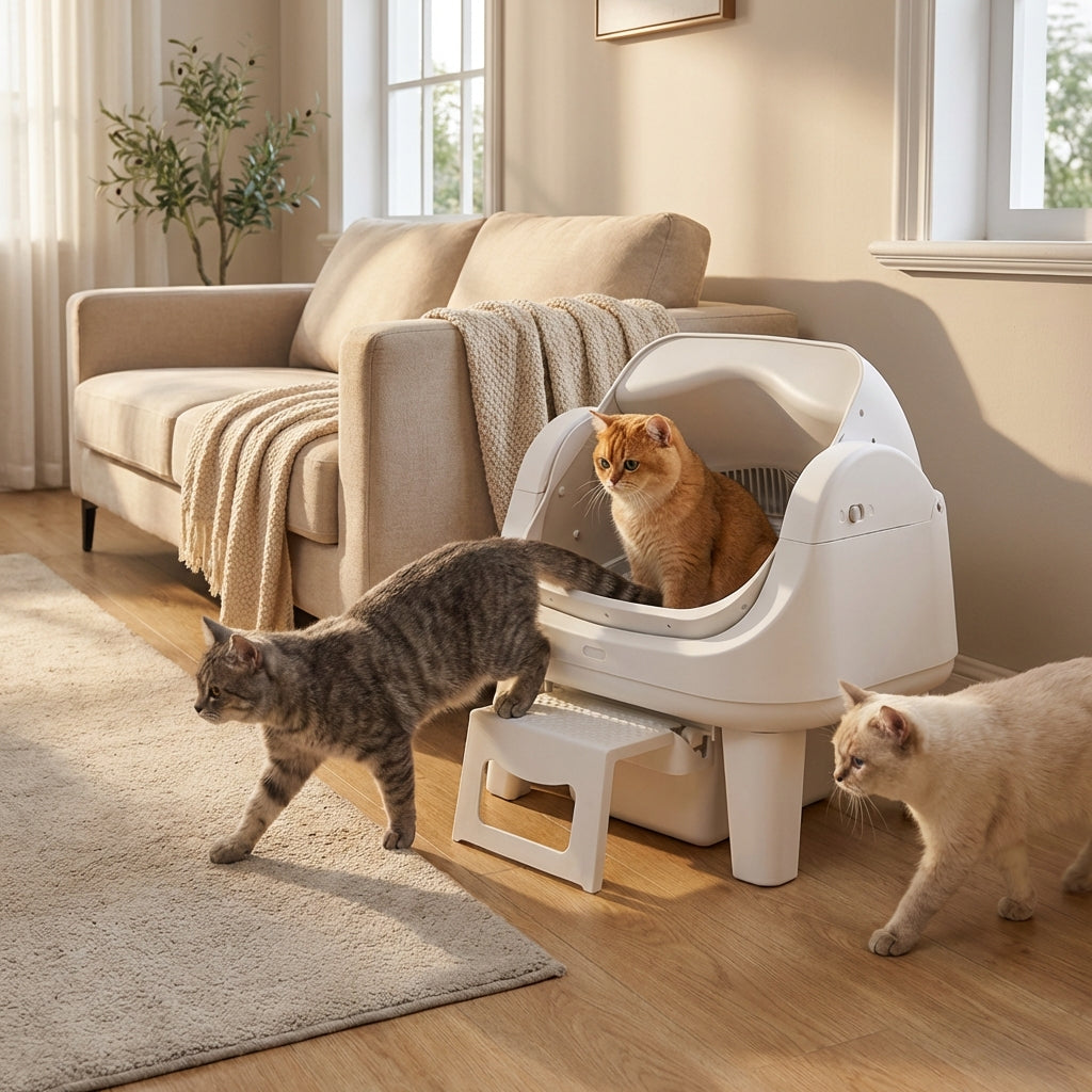 Yes. The design supports shared use by reducing bottlenecks and maintaining consistent cleanliness between visits. Many multi-cat households comfortably use it as a primary litter space.