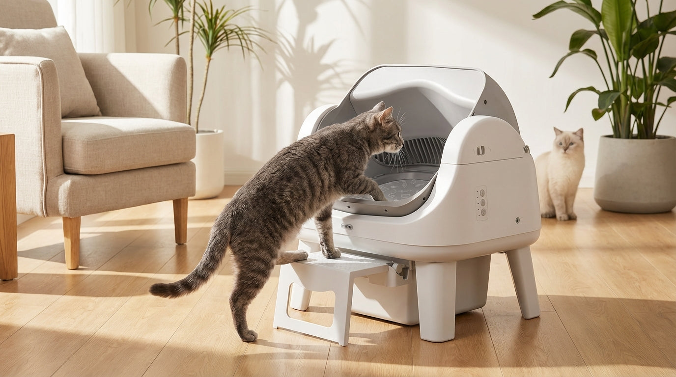 The curved interior structure helps contain litter during normal use. In most homes, scatter levels remain comparable to enclosed units — without sacrificing airflow.