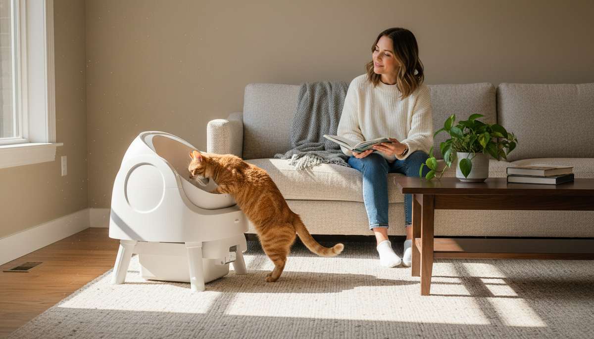 Our self-cleaning litter boxes quietlyseparate waste from the clean litter,so you never have to scoop.