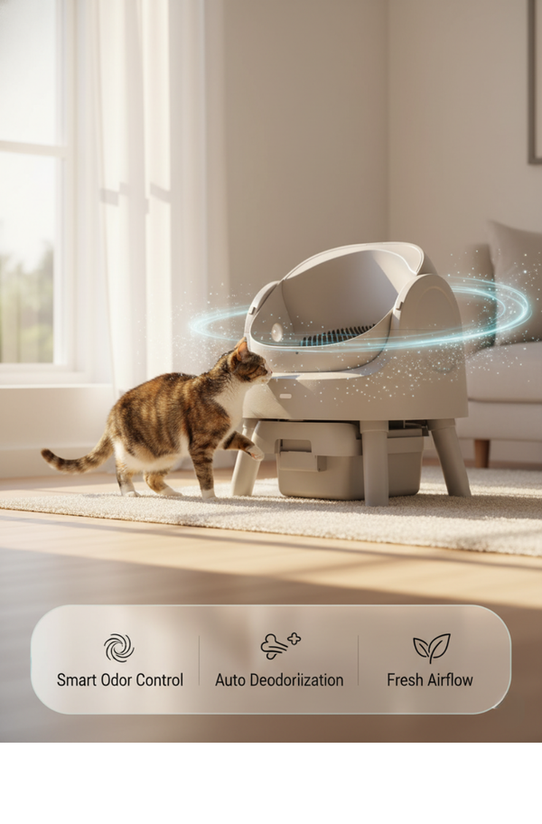 1× Smart Litter Box;9× Litter Bag Rolls (180 pcs);2× Cat Litter Box Pad 💎 For those who want all-around freshness and convenience.