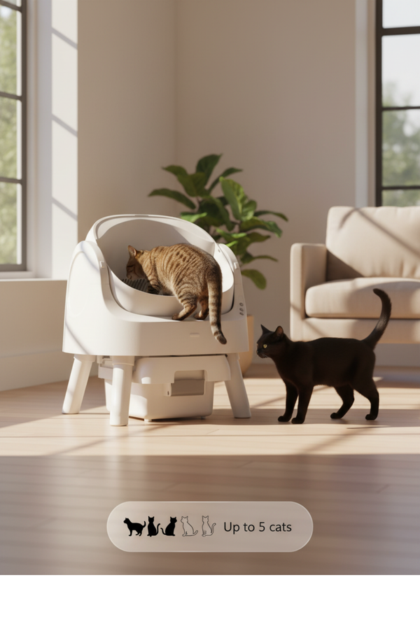 One Litter-Robot 5 is suitable for up to5 cats, removing the need for multipleboxes.